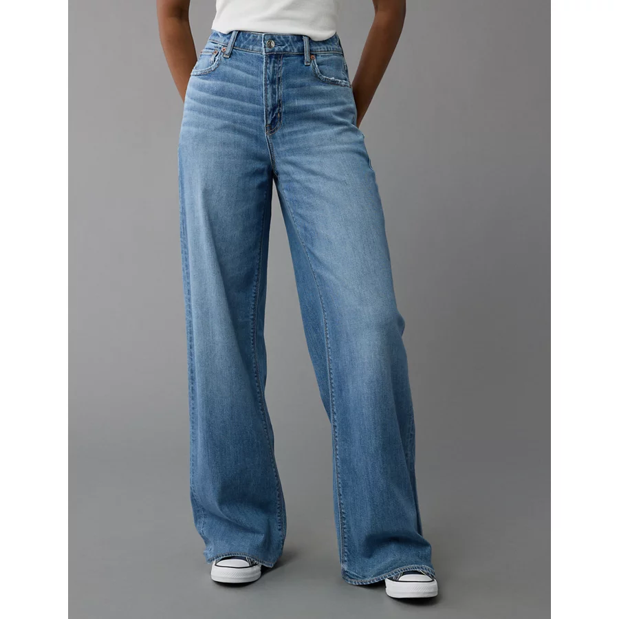 AE Dreamy Drape Stretch Super High-Waisted Baggy Wide-Leg Jean – Medium Bright Indigo