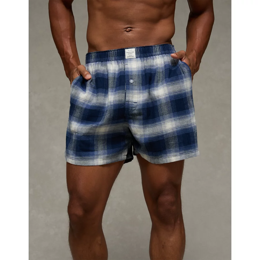 AEO Stretch Plaid Classic Boxer Short – Navy