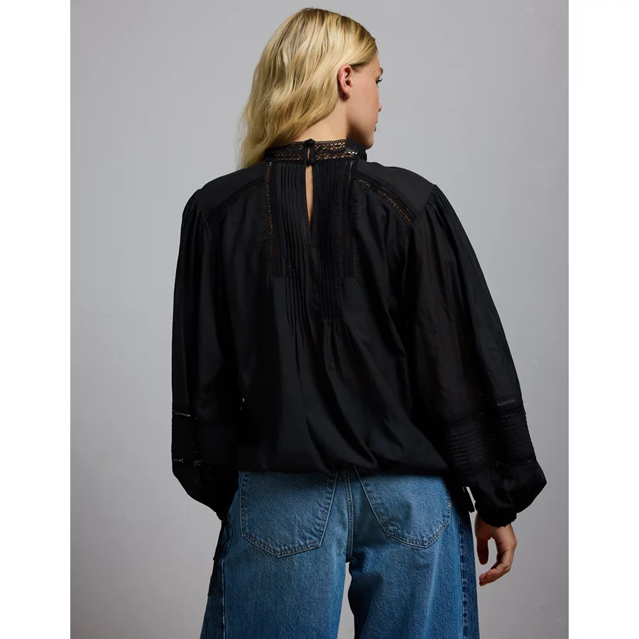 AE77 Premium Lace Peasant Blouse – Black