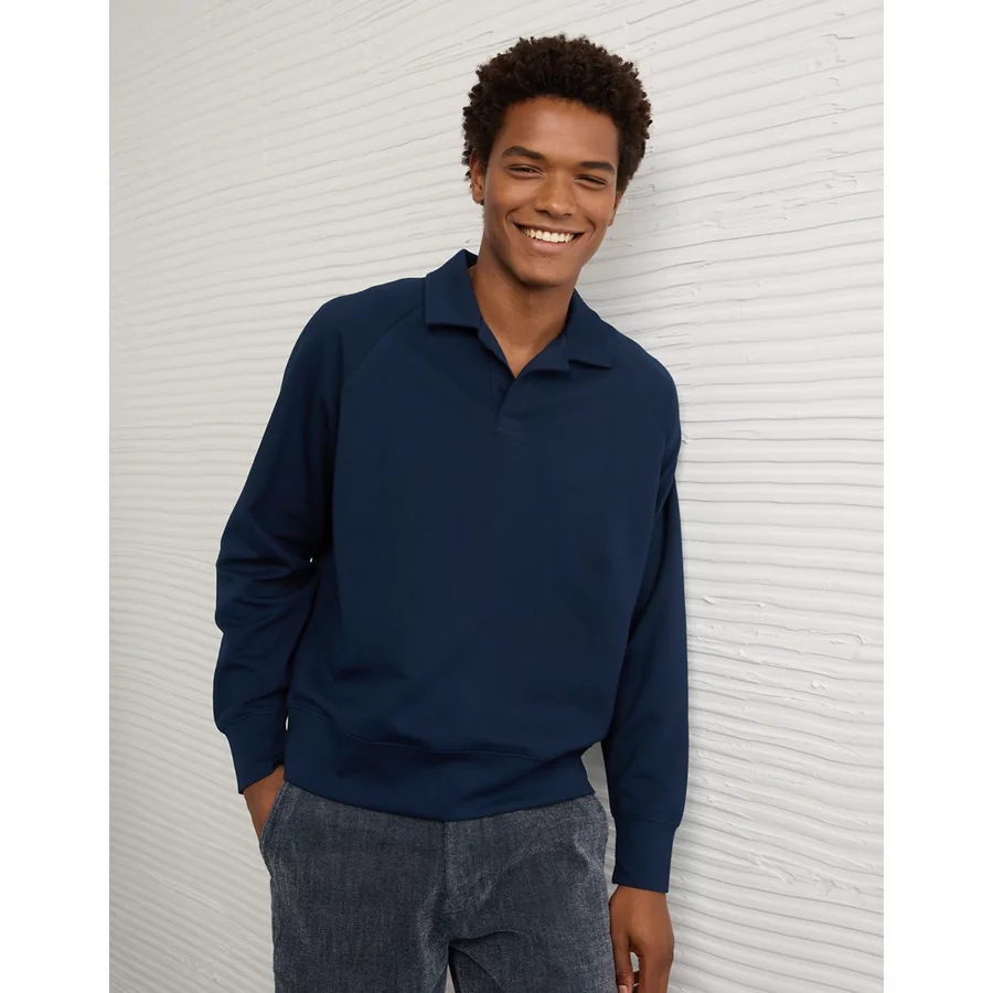 AE 24/7 Long-Sleeve Rugby Polo Sweatshirt – Navy