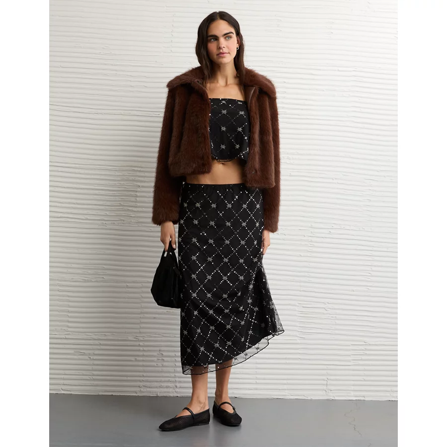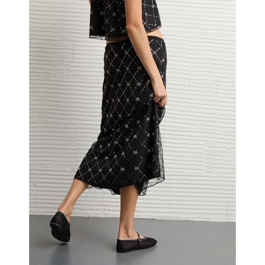 AE High-Waisted Sequin Maxi Skirt – Black