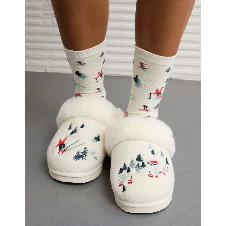 Super soft, fuzzy interiorSynthetic sole, midsole & upperEmbroidered skiers 100.00% POLYESTERImported