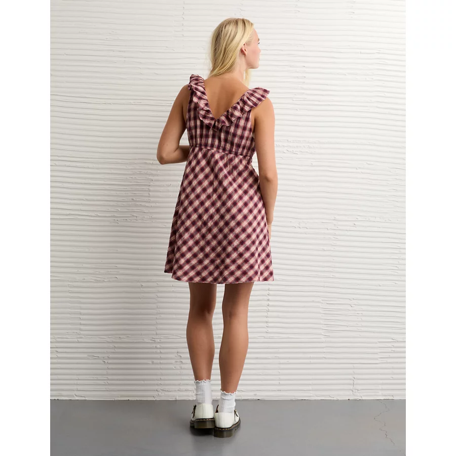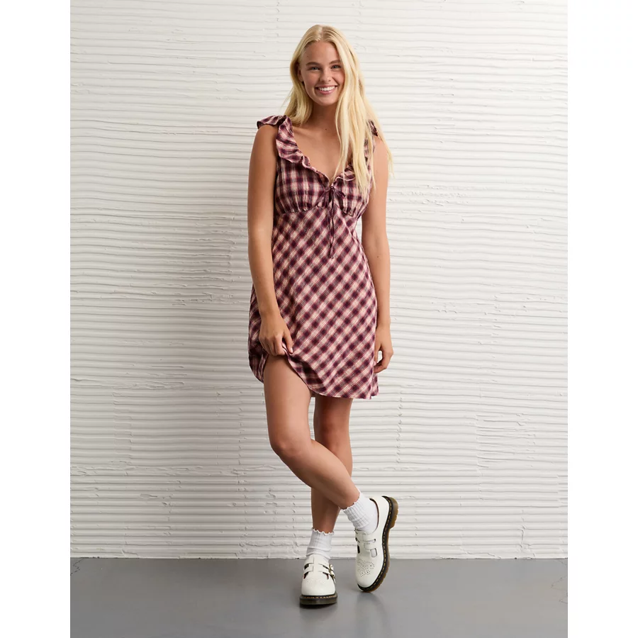 AE Ruffle Tie-Front Mini Dress – Burgundy