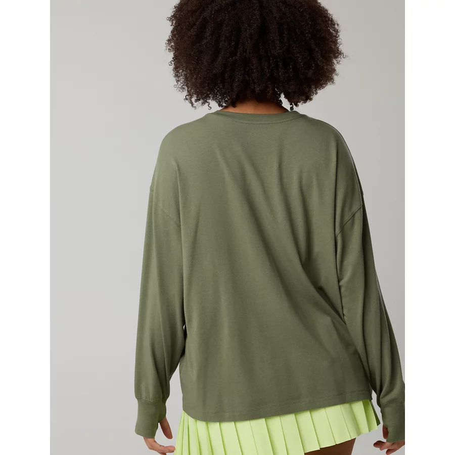 OFFLINE By Aerie Let’s Stretch Long Sleeve Boyfriend T-Shirt – Olive Fun