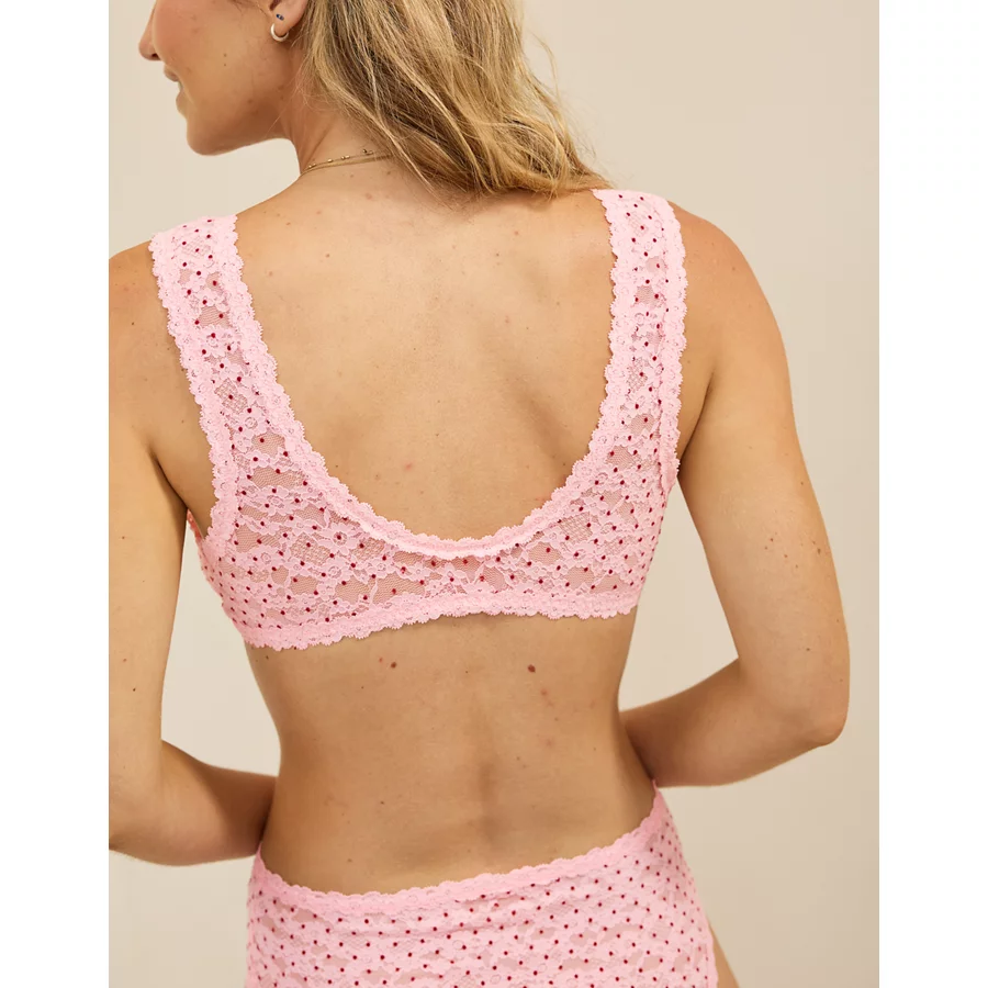 Show Off Flocked Vintage Lace Plunge Bralette – Club Pink