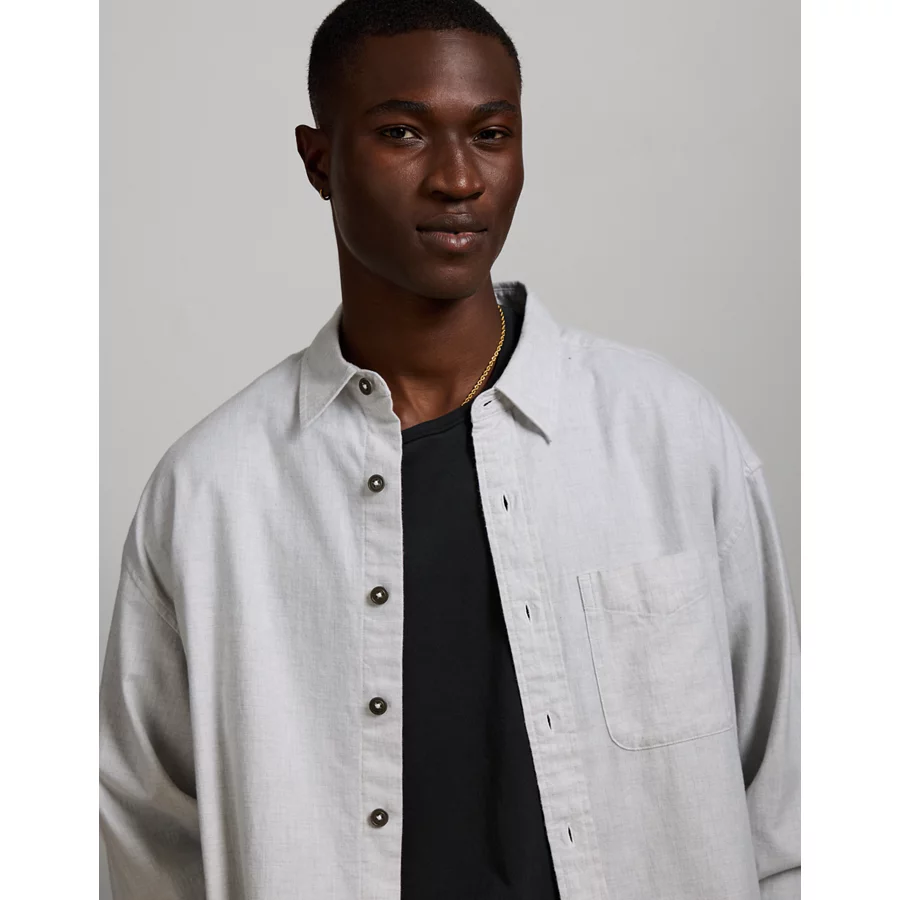 AE77 Premium Flannel Shirt – Light Heather Gray
