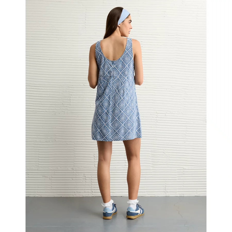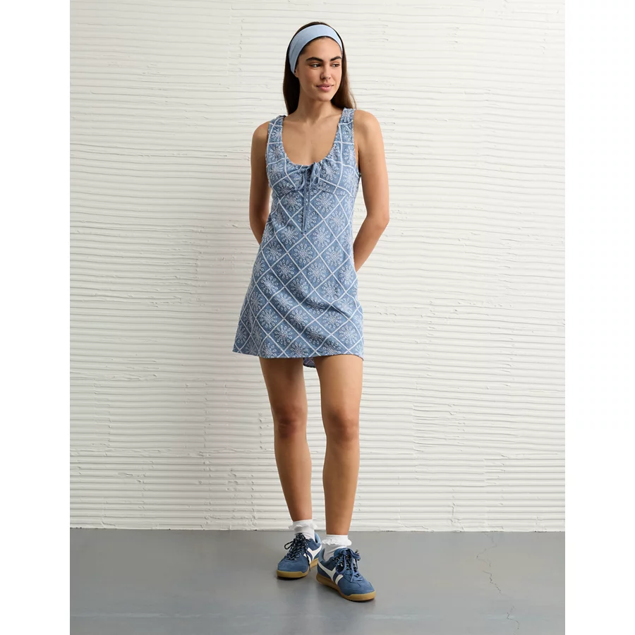 AE Tie Front Eyelet Mini Dress – Chambray Blue