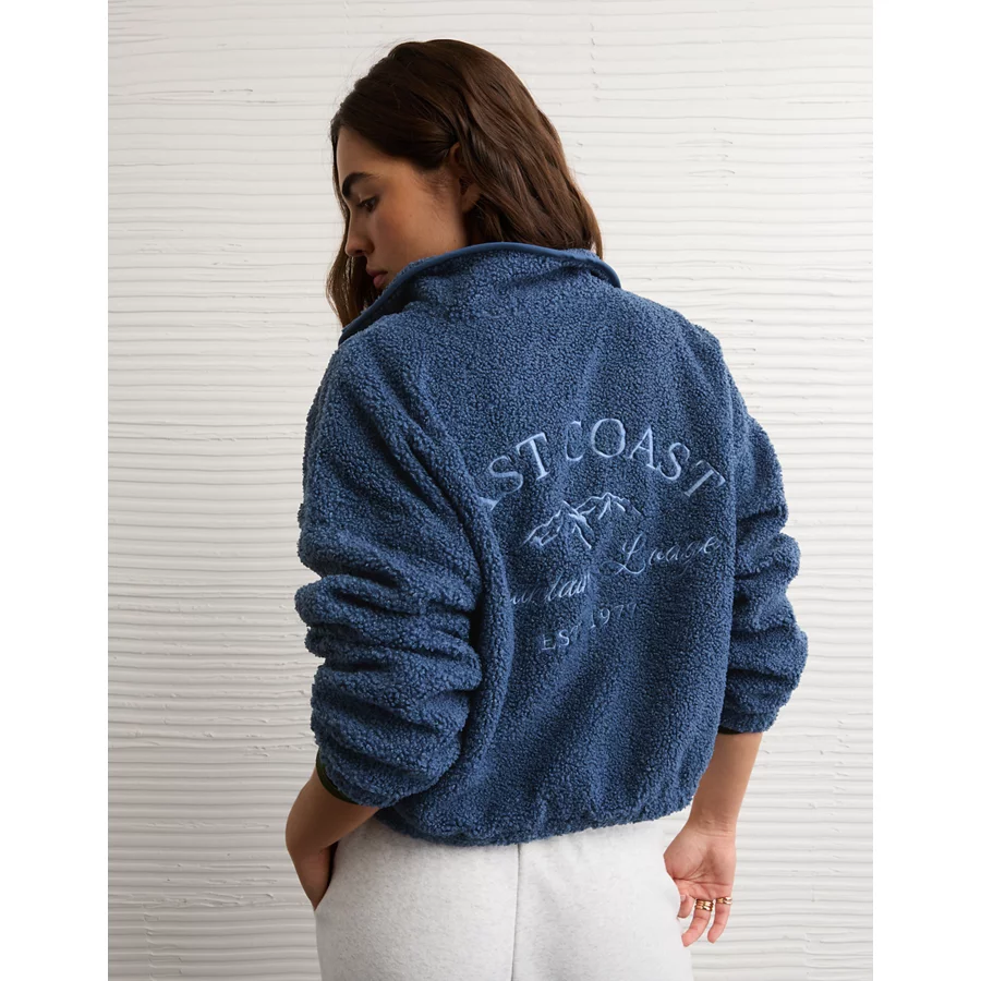 AE Sherpa Fleece Graphic Henley Sweatshirt – Navy