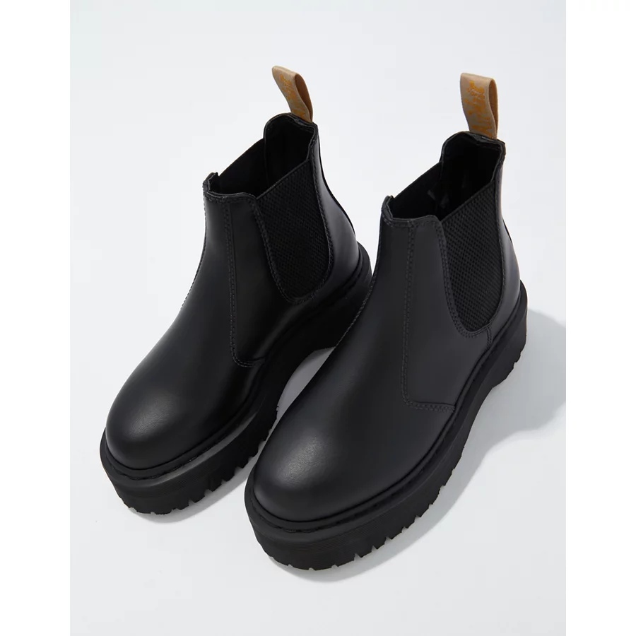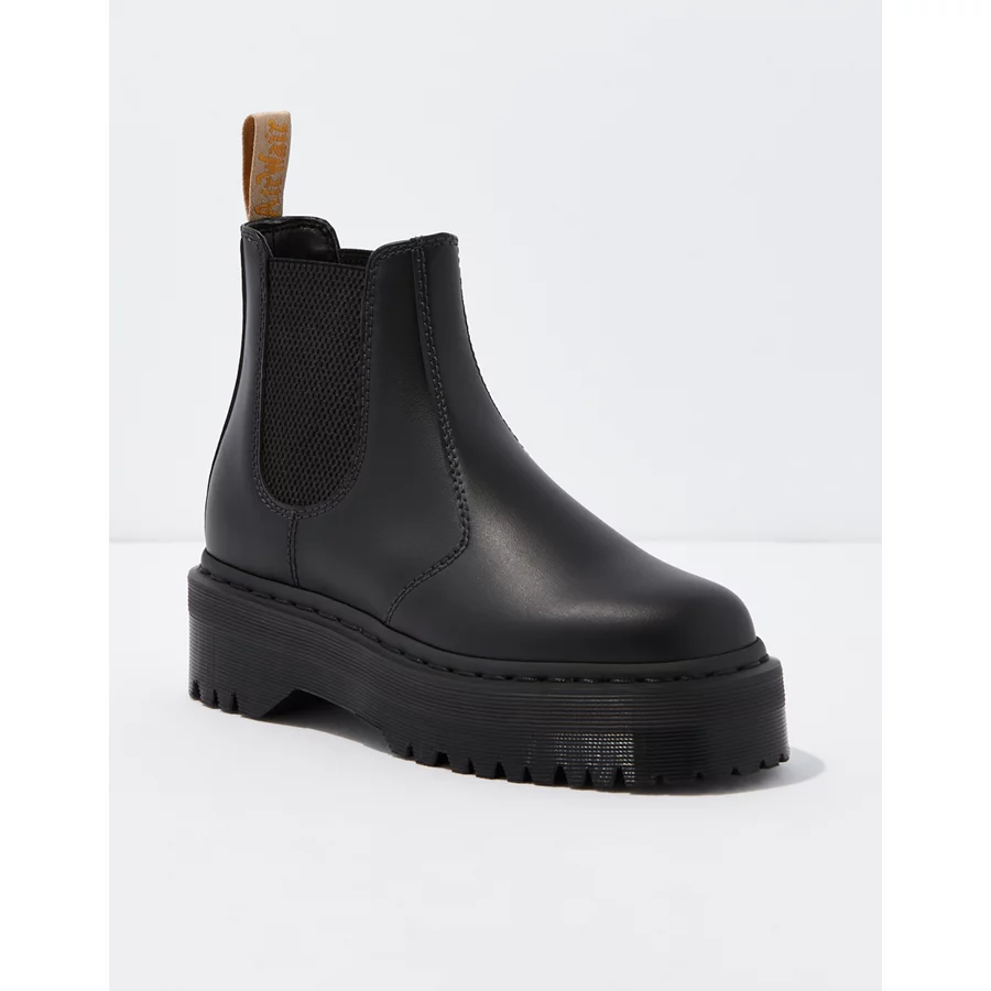 1 1/2 inch platform soleElastic gussetsMade with classic Doc’s DNA, including grooved edges, visible stitching & heel-loopConstructed on the iconic