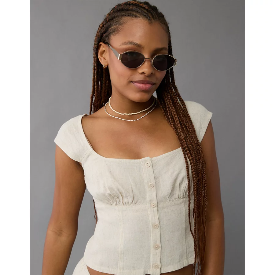 Cotton slub fabricV-neckUpside-down V empire waist 100% CottonMachine washImported Empire waist silhouetteSleeveless