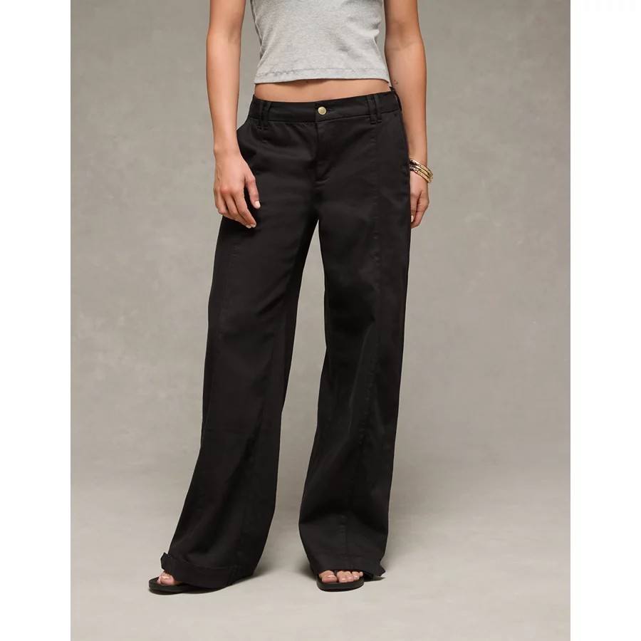 AE Stretch Mid-Rise Ultra Wide-Leg Convertible Trouser – Onyx Black