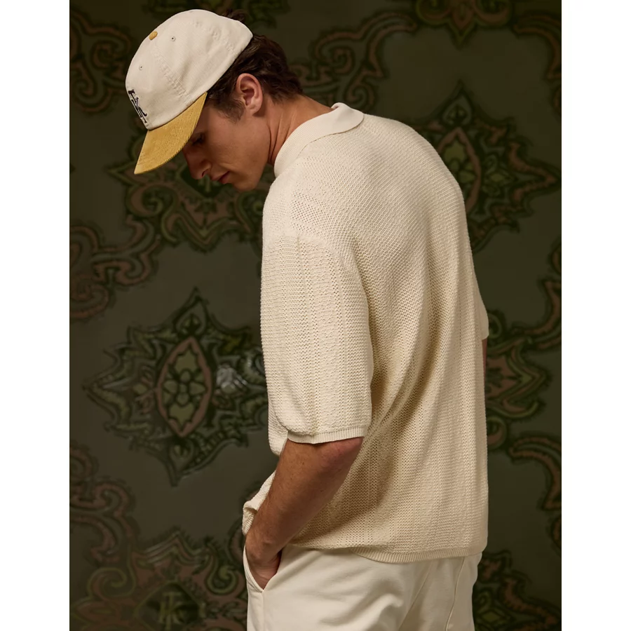 Part of our exclusive, limited-edition collab with Tru Kolors by Travis KelceCable-knit cotton blend with a hint of shineCollared neckPearlized