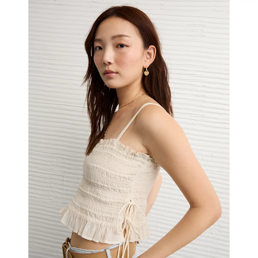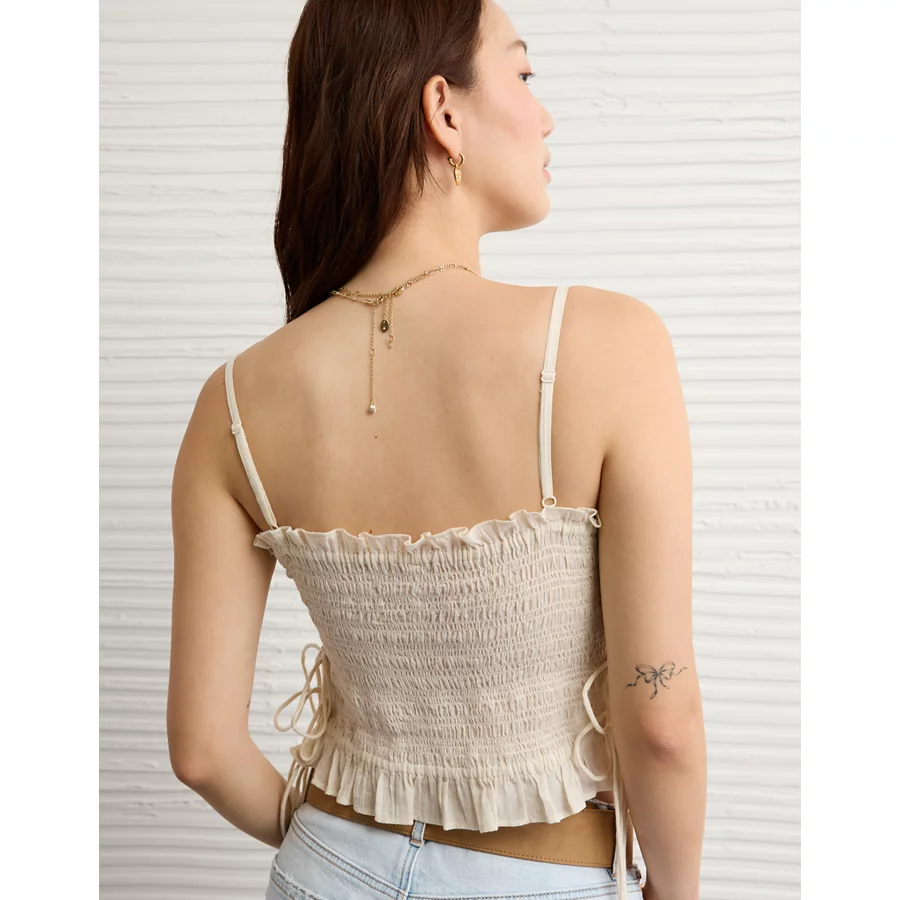 AE Smocked Tie Side Button-Up Tank Top – Cream