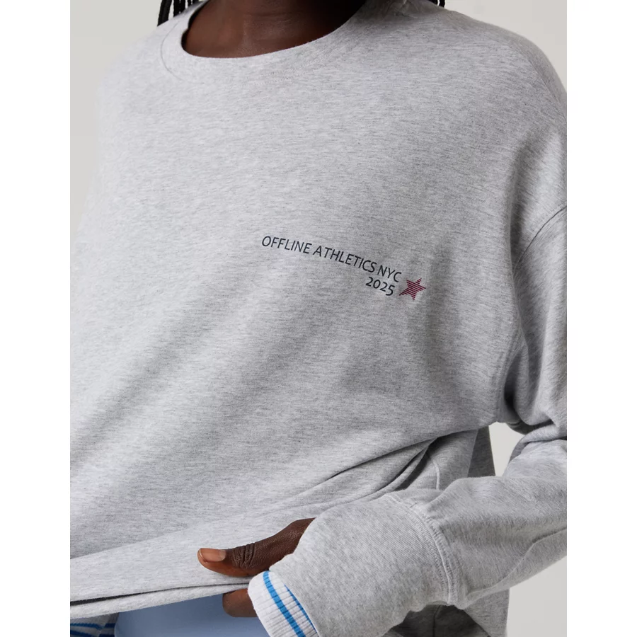 OFFLINE By Aerie Let’s Stretch Long Sleeve Boyfriend T-Shirt – Gray