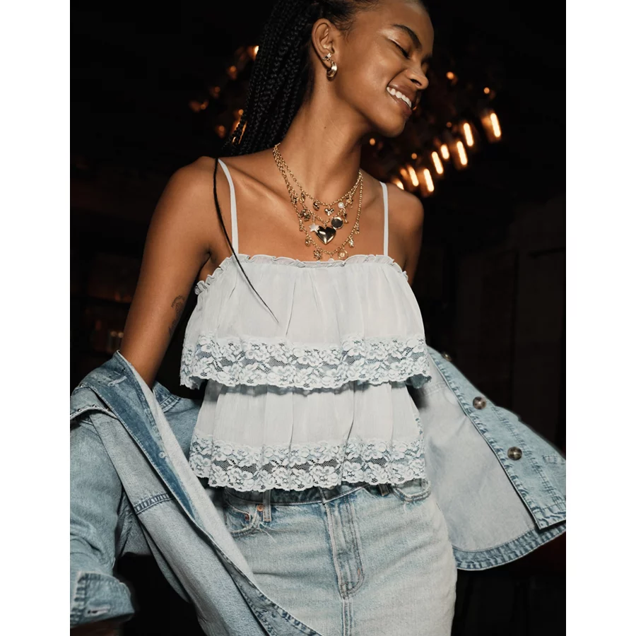 AE Lace-Trim Long Sleeve T-Shirt – Cream