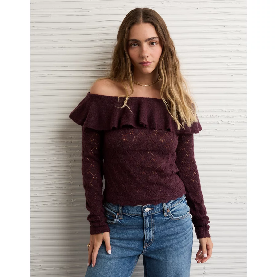 AE Ruffle Off-The-Shoulder Sweater – Moonlight