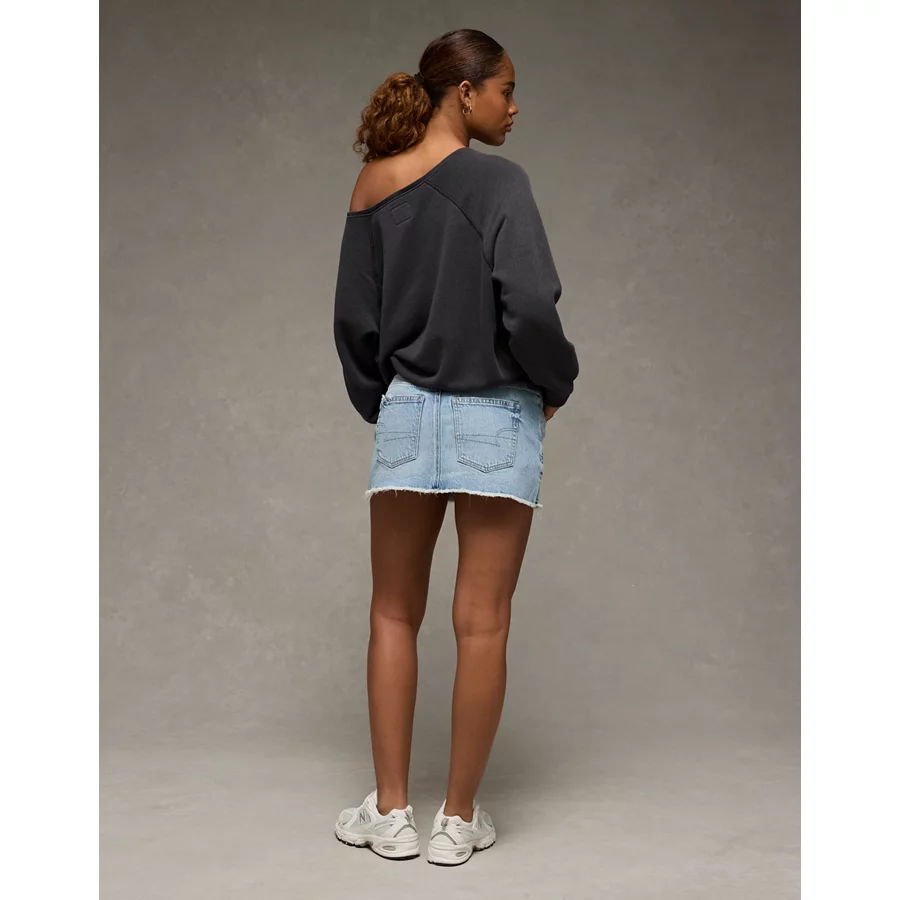AE Big Hug Off-The-Shoulder Waffle Sweatshirt – Dark Brown