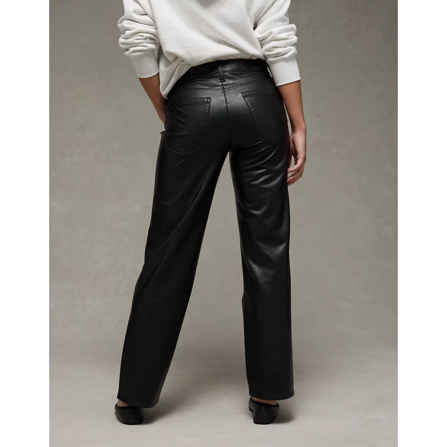 AE Stretch High-Waisted Stovepipe Leather Pant – Onyx Black