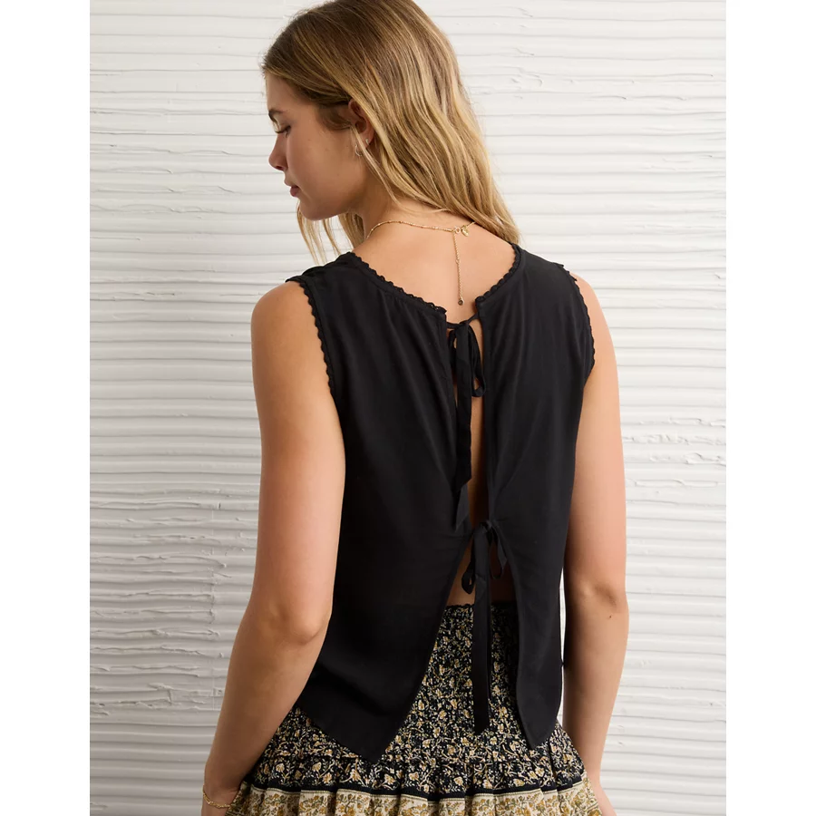 AE V-Neck Tie Back Top – Black