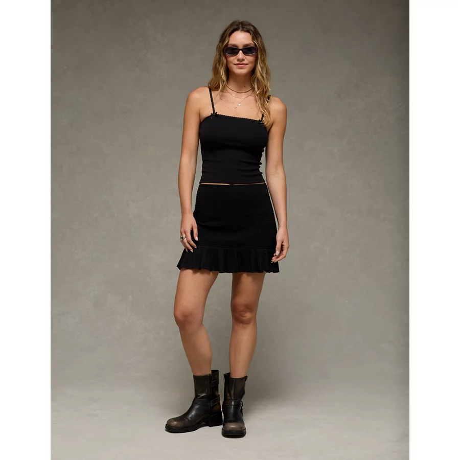 AE Sunchaser Knit High-Waisted Smocked Mini Skirt – True Black