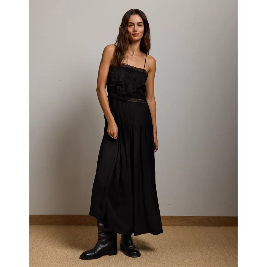 AE77 Lace Ruffle Maxi Dress – Black