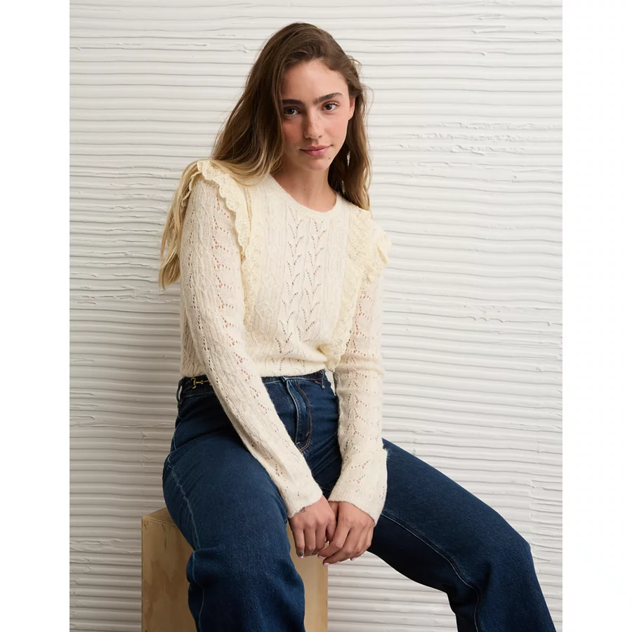 AE Lace Ruffle Sweater – Oatmeal