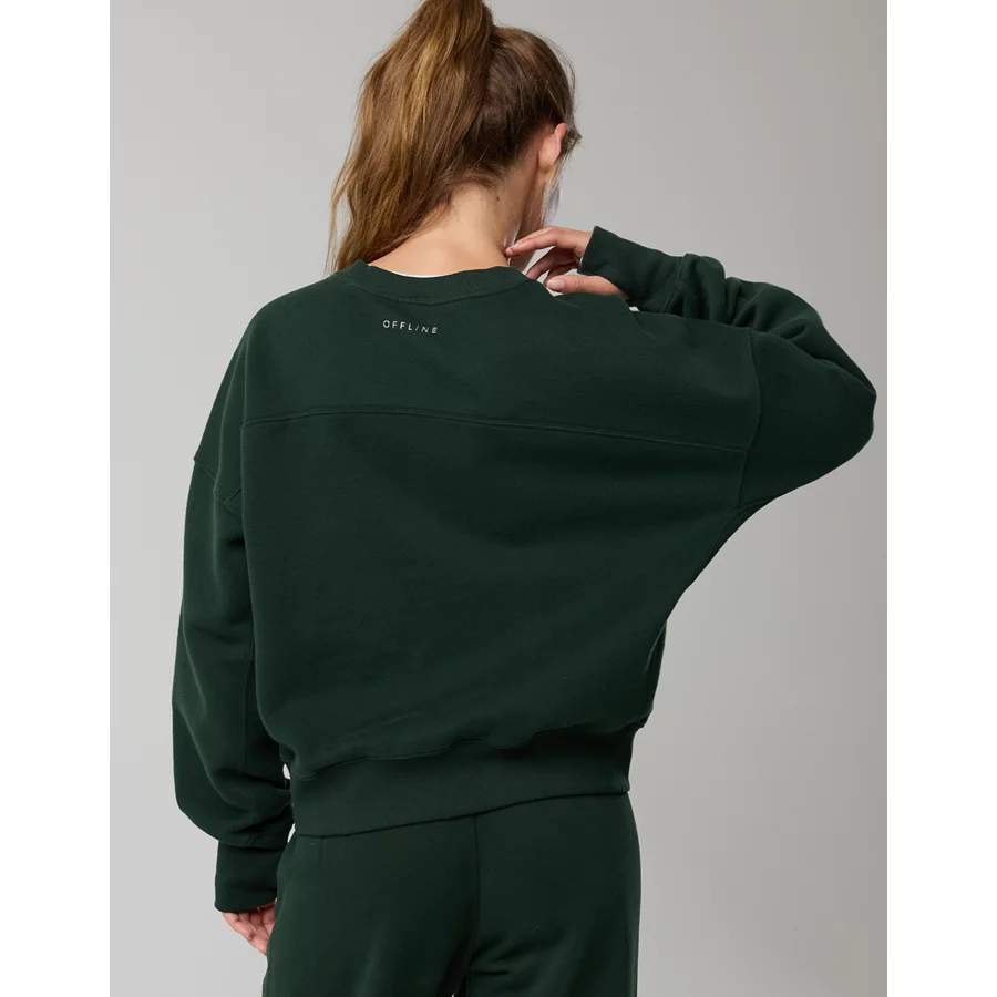 OFFLINE By Aerie Cloud Fleece Classic Crewneck Sweatshirt – Deep Forest Green