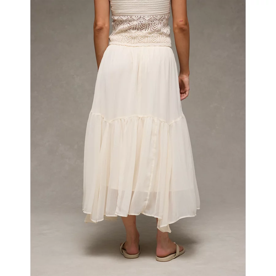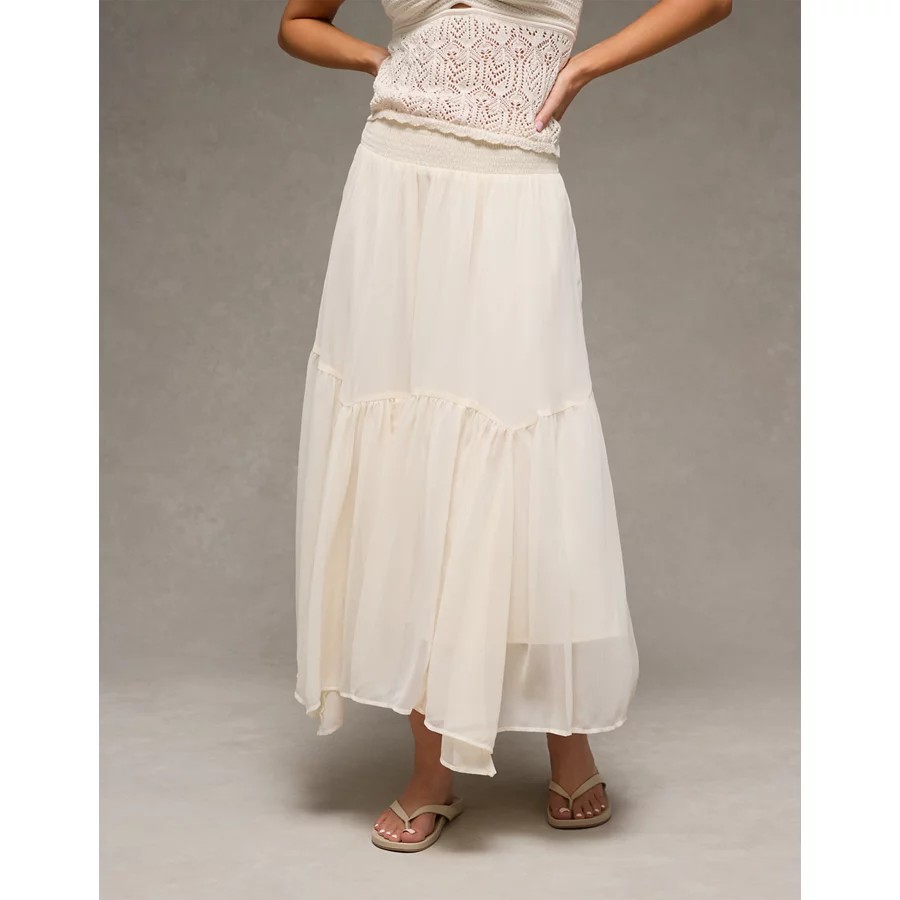 AE Smocked Handkerchief Hem Maxi Skirt – Cream