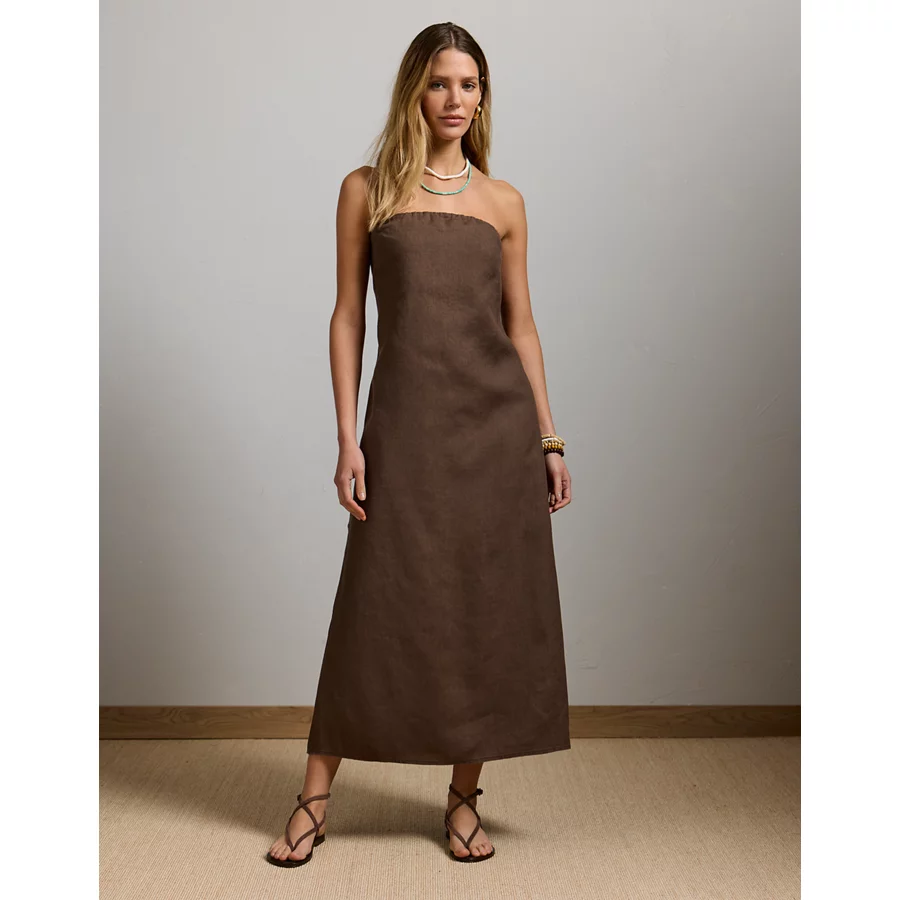 Strapless straight-across topNo-slip tape on bust interior & smocked back for effortless wearSlits at both side seams 100% LinenMachine wash