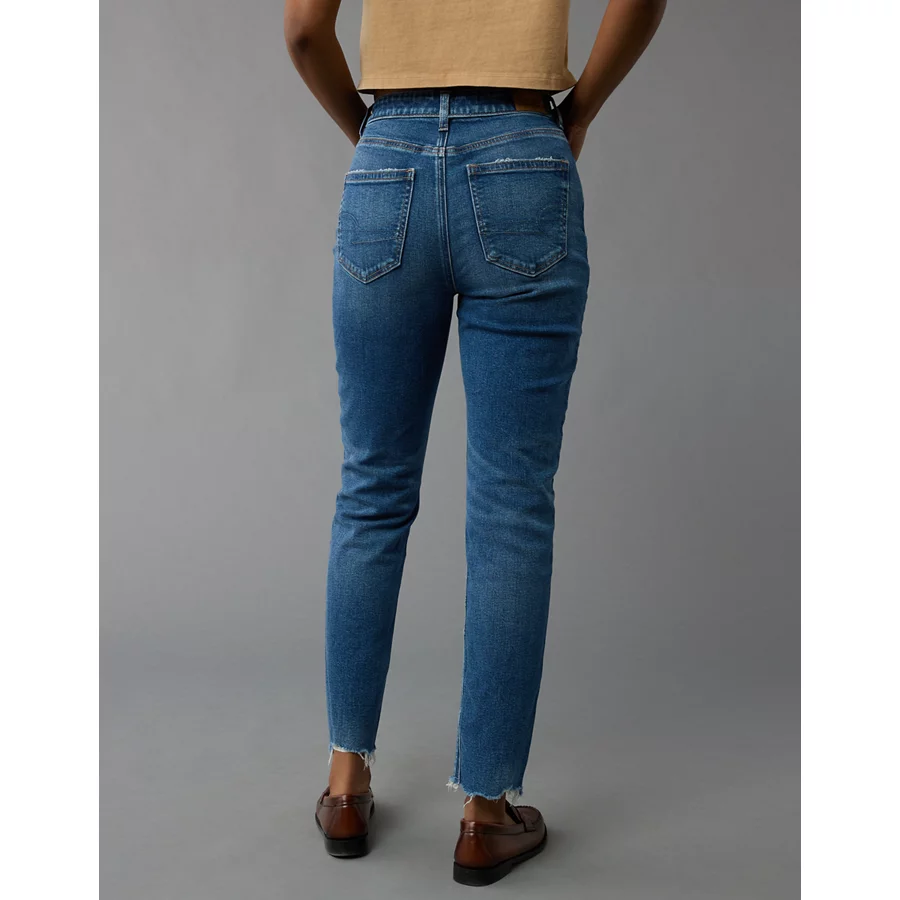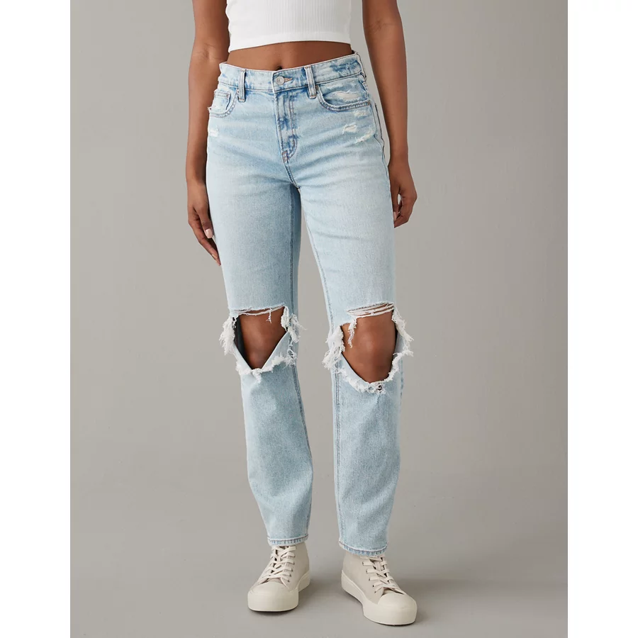 AE Stretch Super High-Waisted Ripped Ankle Straight Jean – Skylight