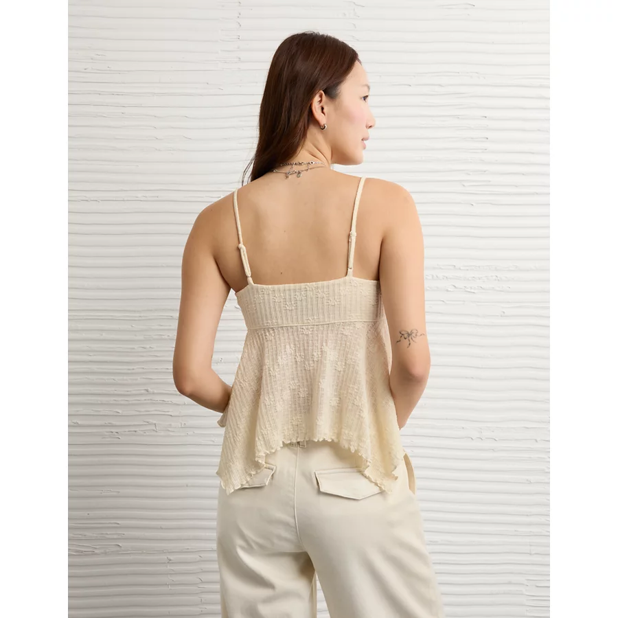 Lacey stretch fabricationSpaghetti strapsHandkerchief trimSweetheart neckline 97% Nylon, 3% ElastaneMachine washImported Classic fit & length