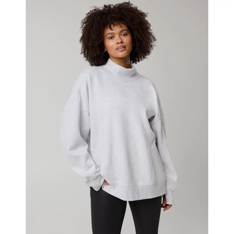 OFFLINE By Aerie Cloud Fleece Oversized Mockneck Sweatshirt – Light Heather Gray