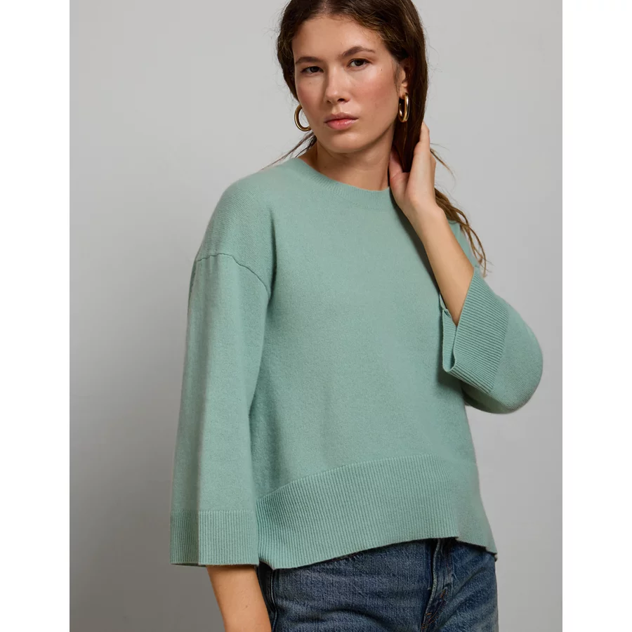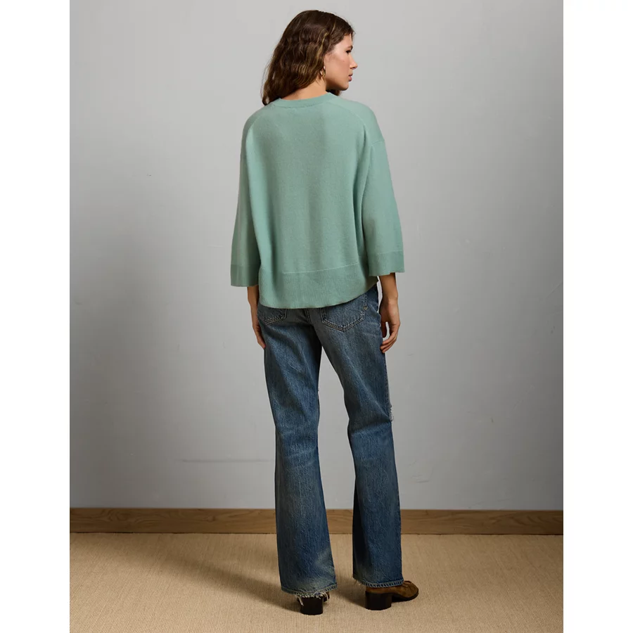 Super soft Italian cashmereCrew neckThree-quarter-length sleeves 100% CashmereDry cleanImported Oversized fit