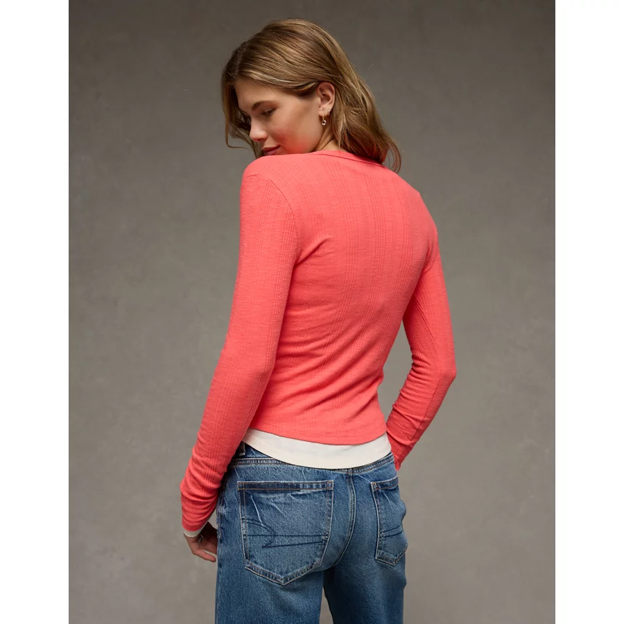 AE Long Sleeve Henley T-Shirt – Pink