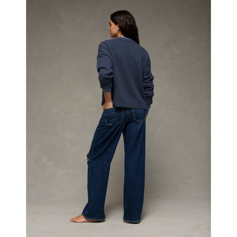 AE Dreamy Drape Stretch Curvy Super High-Waisted Baggy Wide-Leg Jean – Light Bright Indigo