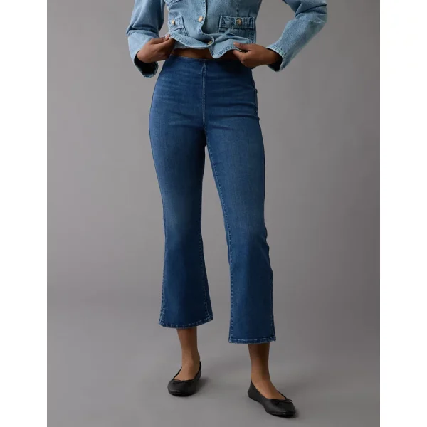 AE Luxe Pull-On High-Waisted Kick Bootcut Crop Jean – Medium Indigo