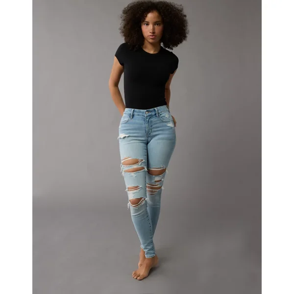 AE Next Level Curvy High-Waisted Ripped Jegging – Destroyed Light Wash