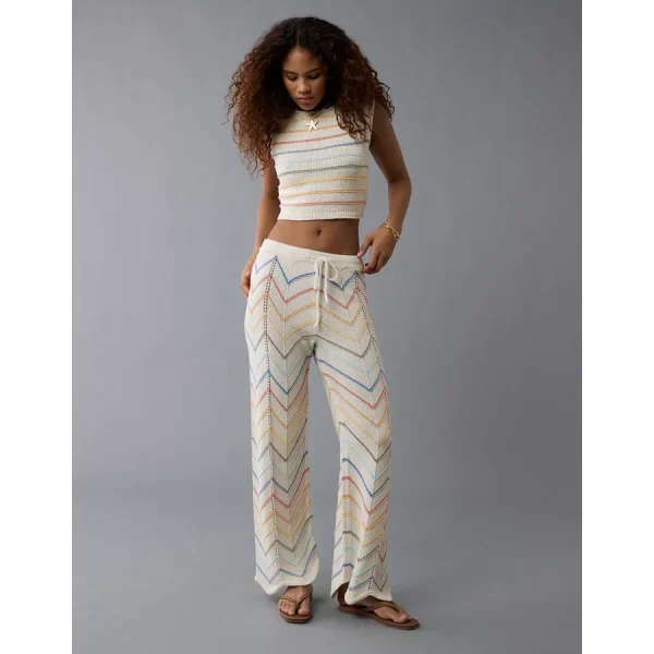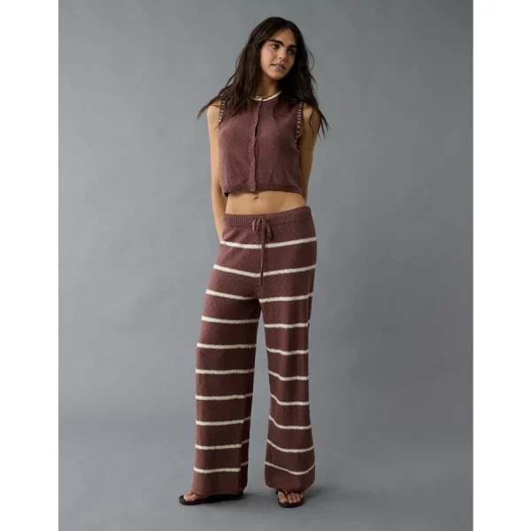 AE Knit Wide-Leg Striped Pant – Light Brown