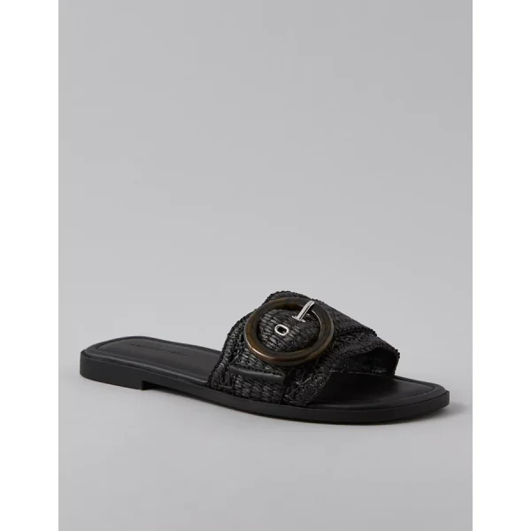 AE Raffia Buckle Slide Sandal – Dark Brown
