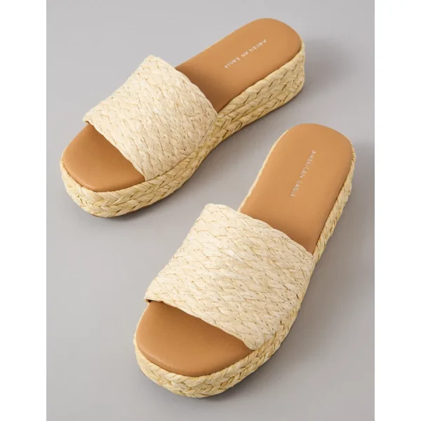AE Raffia Espadrille Flatform Slide Sandal – Natural
