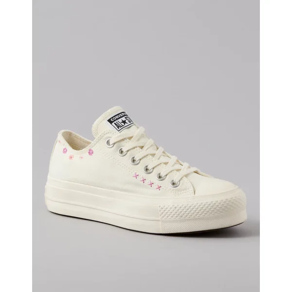 Converse Chuck Taylor All Star Lift Platform Embroidered Flowers Low-Top Sneaker – White