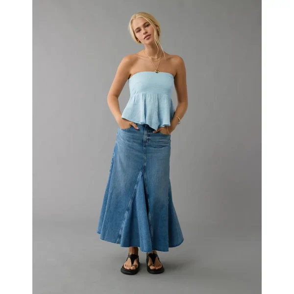AE Handkerchief Hem Smocked Babydoll Tube Top – Black