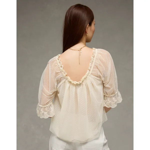 AE Square Neck Mesh Blouse – Cream