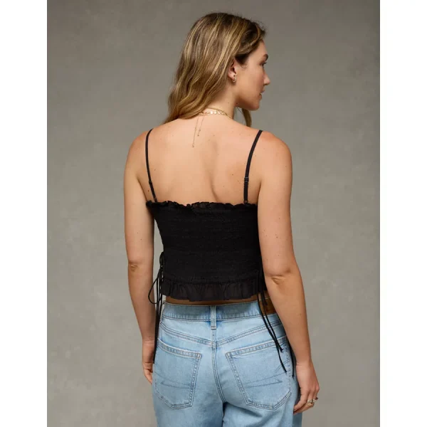 AE Smocked Tie Side Button-Up Tank Top – Black