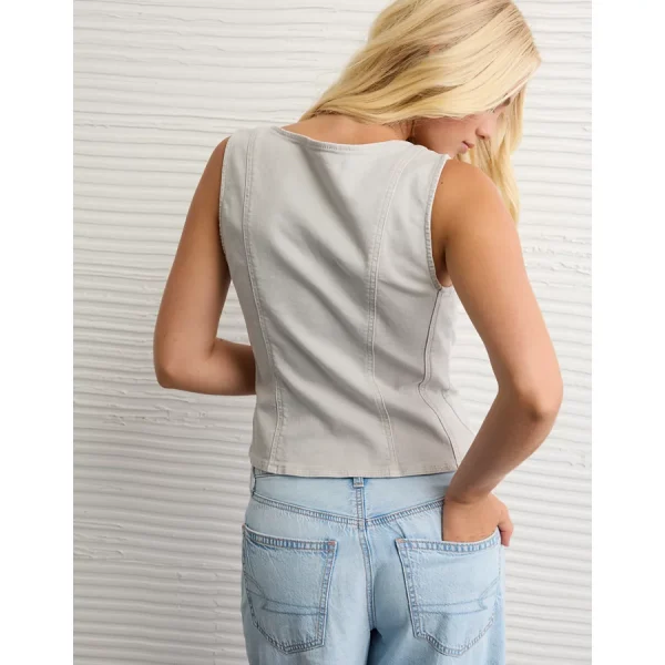 AE Square Neck Button-Up Denim Vest – Light Gray