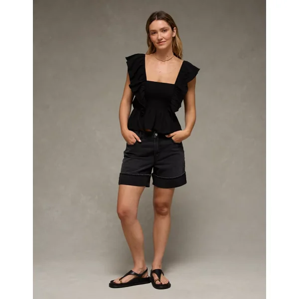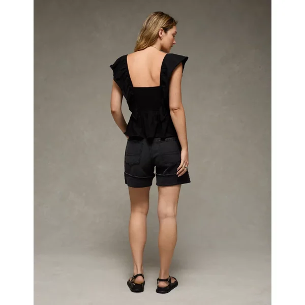 AE Sunchaser Knit Flutter Sleeve Babydoll Shirt – True Black