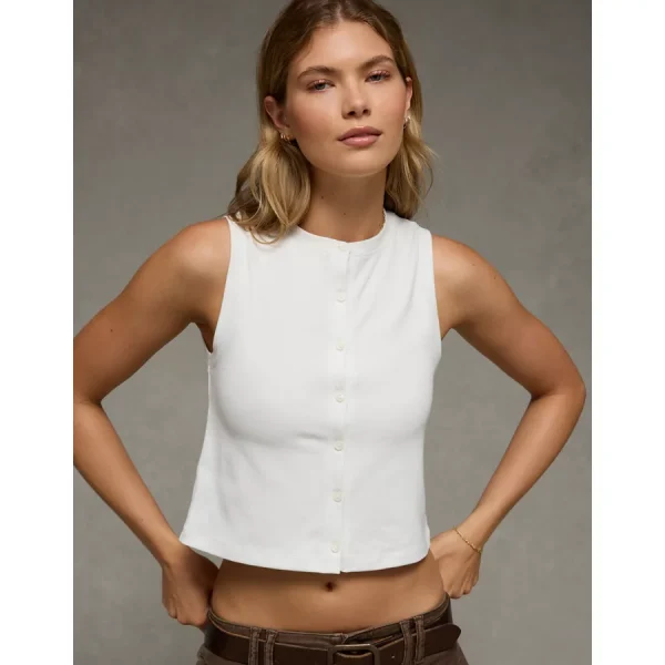 AE Button-Up Tank Top – Raw White