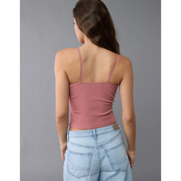 Ribbed lightweight fabricSquare neckLace trim with bow detailsThis is Real Good: Made with the planet in mind & a promise