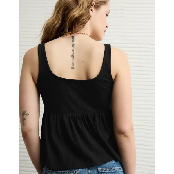 AE Tie Front Flyaway Babydoll Tank Top – True Black