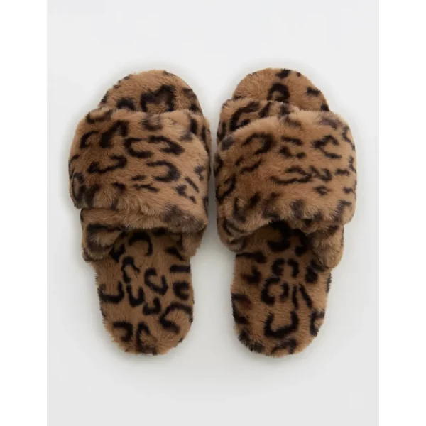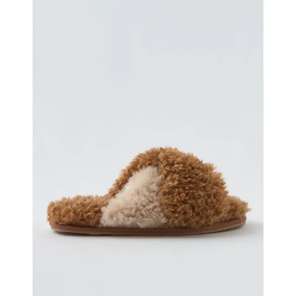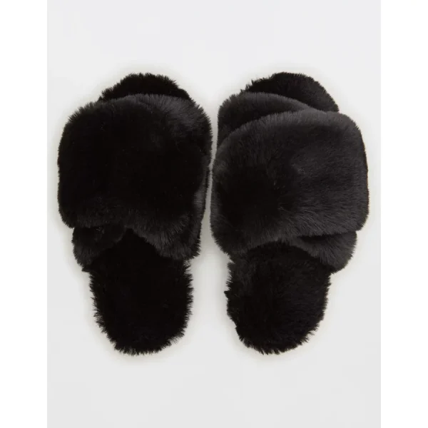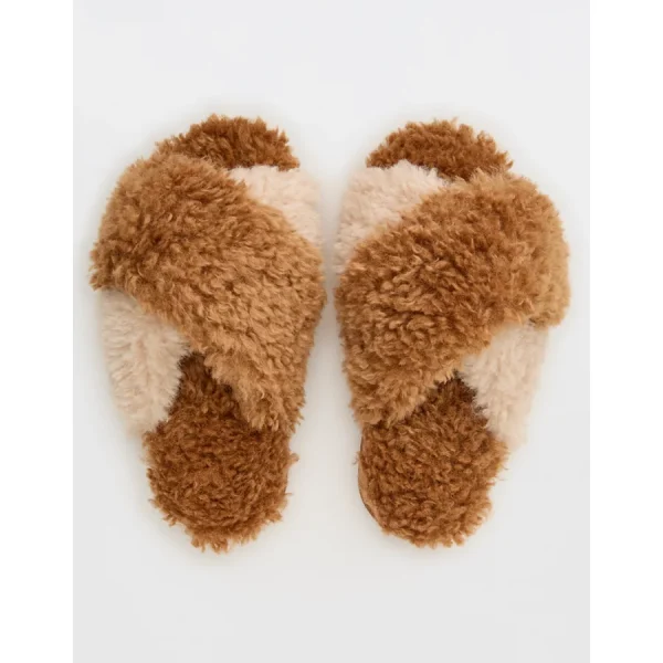 Aerie Fuzzy Criss Cross Slippers – Cake Batter